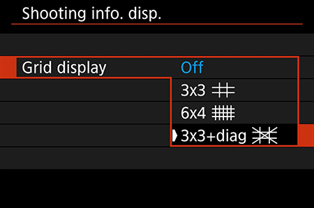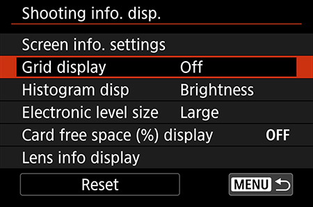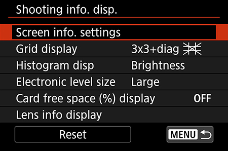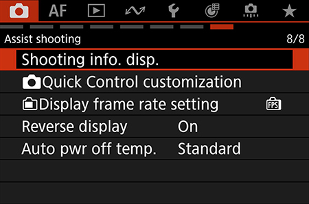 به منوی قرمز بروید و گزینهی Shooting info. disp. را انتخاب کنید.