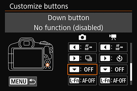 برای EVF نیز مراحل مشابه را با VF info/toggle settings انجام دهید.