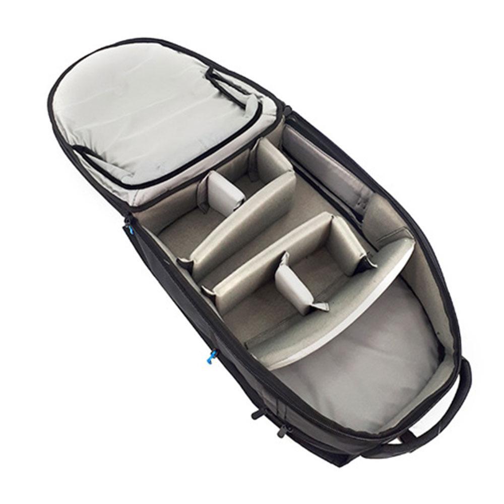 میتوانید بهراحتی بدنهی دوربین، چند لنز، فلاش و سایر تجهیزات جانبی را در بخشهای مجزا قرار دهید.