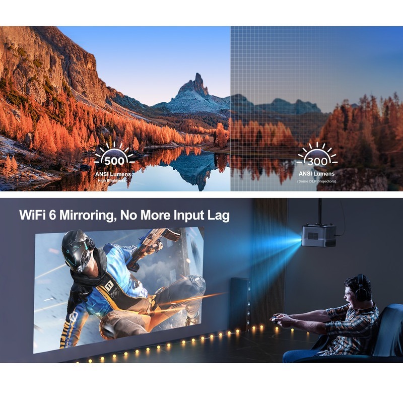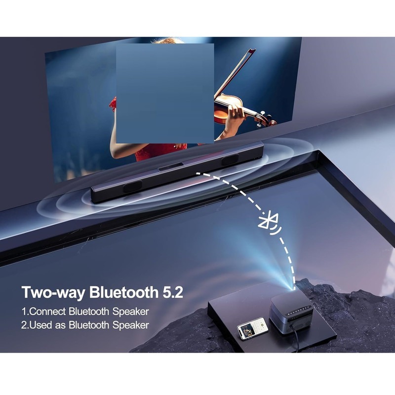 همچنین وجود بلوتوث دوطرفه این امکان را ایجاد میکند که پروژکتور به انواع اسپیکرهای بیسیم، ساندبارها یا هدفونهای بلوتوثی متصل شود و تجربه صوتی قدرتمندتری در اختیار کاربر قرار دهد.